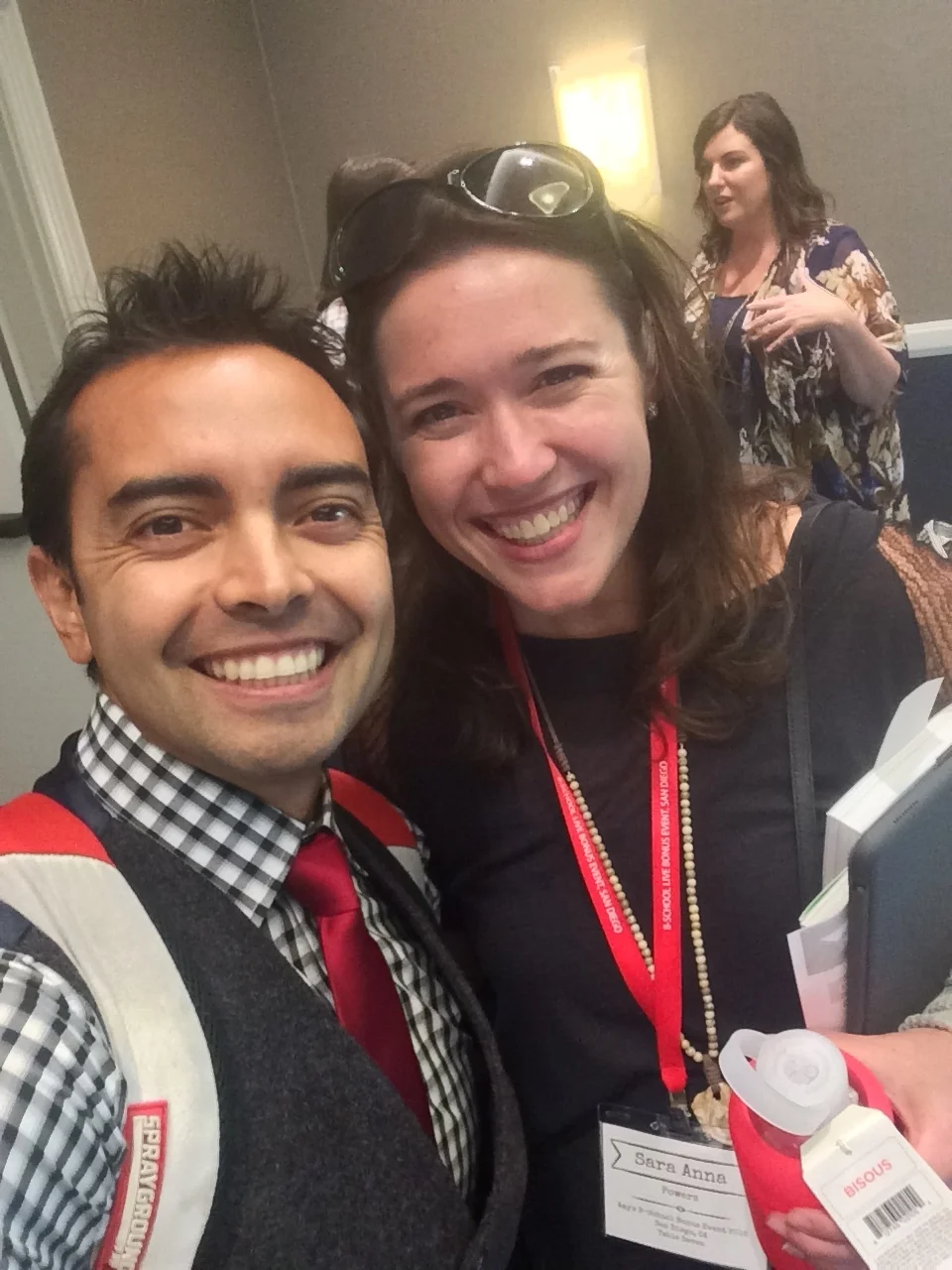 With Pat Flynn, one of my online mentors, at Amy Porterfield's B-School Business Accelerator (plus an Amy Porterfield photobomb:-) )